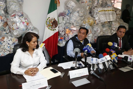 De las más de 205 mil piezas decomisadas, 55 por ciento son muestras médicas, 32 por ciento medicamento caduco, 12.5 por ciento son presumiblemente falsos o robados y 1.5 por ciento del sector de salud.