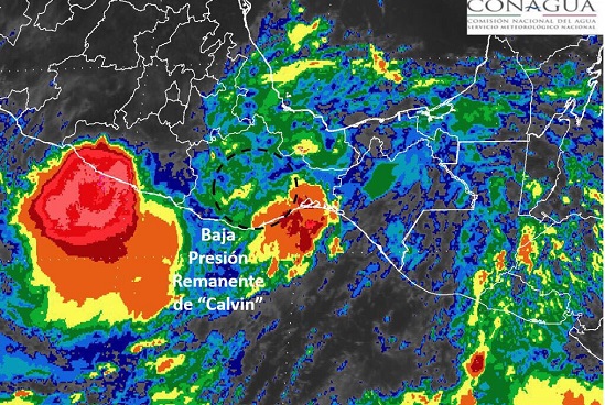 En tanto, el Servicio Meteorológico Nacional (SMN) dio a conocer que aunque Calvin se degradó esta mañana a depresión tropical, continúa activa la zona de prevención por potencial de tormentas torrenciales con lluvias puntuales.