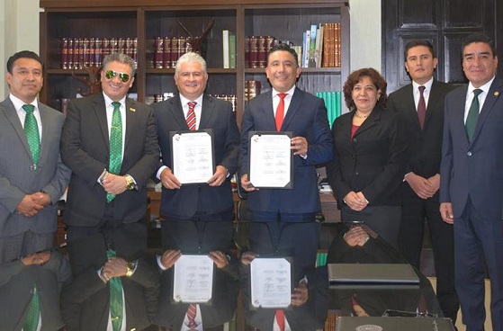El Lic. Herminio Cahue Calderón, Secretario General del Sindicato Único de Trabajadores de los Poderes, Municipios e Instituciones Descentralizadas del Estado de México (SUTEYM), firmó el convenio de Sueldo y Prestaciones Socioeconómicas 2017 con el Presidente de la Junta de Coordinación Política de la Cámara de Diputados, Mtro. Cruz Juvenal Roa Sánchez.