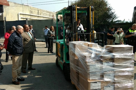 Añadió que elementos la Comisión Estatal de Seguridad Ciudadana realizan acciones de resguardo, a efecto de concentrar en las bodegas del IEEM urnas, cancel electoral, bases tipo tijera para cancel electoral, bases y charola para urna, mampara especial, útiles de oficina y la tinta indeleble.