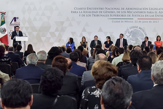 Al inaugurar el Cuarto Encuentro Nacional de Armonización Legislativa de las Comisiones para la Igualdad de Género, de los Mecanismos para el Adelanto de las Mujeres y de los Tribunales Superiores de Justicia en las Entidades Federativas, destacó los esfuerzos para tipificar ese delito.