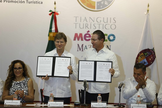 En el marco de su visita de trabajo a Culiacán, Sinaloa, De la Madrid Cordero, acompañado por el gobernador del estado Quirino Ordaz Coppel, encabezó la firma de convenio “Tianguis Turístico Mazatlán 2018” e hizo entrega de Reconocimientos a empresarios y prestadores de servicios turísticos de la entidad.