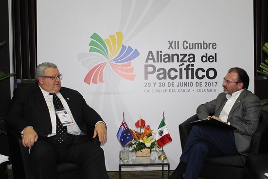 En el marco de la XVIII Reunión del Consejo de Ministros de la Alianza del Pacífico, celebrada en esta ciudad, el Secretario de Relaciones Exteriores de México, Luis Videgaray Caso, sostuvo una reunión de trabajo con el Ministro de Relaciones Exteriores de Nueva Zelandia, Gerry Brownlee.