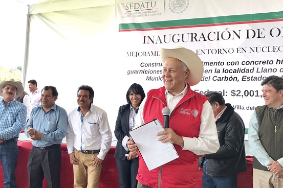 Con la entrega de obras de infraestructura como la pavimentación con concreto hidráulico, guarniciones y banquetas en la localidad de El camino Llano de Zacapexco, Villa del Carbón ─que forma parte del Convenio para el Fortalecimiento de Núcleos Agrarios─, además de mejorar el entorno urbano, se eleva la calidad de vida de los habitantes de la zona, abundó.