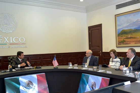 Durante el encuentro de trabajo, el Secretario Kelly estuvo acompañado por la Embajadora de Estados Unidos en México, Roberta S. Jacobson, por el Director General de la Agencia Central de Investigaciones (CIA, por sus siglas en inglés), Michael Richard Pompeo, y por el Senador por el Estado de Arkansas, Tom Cotton.
