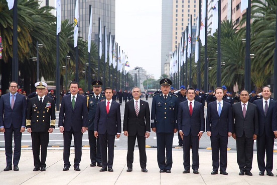 Previo al izamiento de las 32 banderas de las entidades de la República, a lo largo de la avenida Plaza de la República, indicó que la convocatoria es «para que revisemos juntos qué se necesita para que redoblemos este esfuerzo contra la delincuencia y hagamos todo lo necesario».