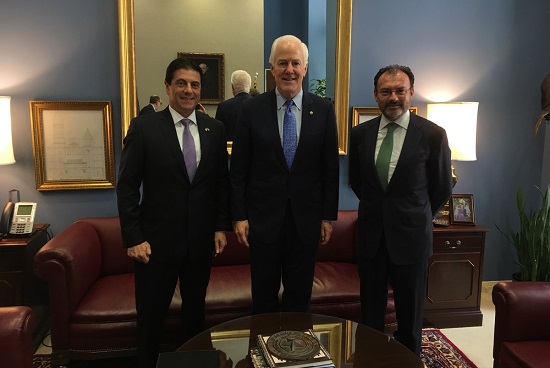 Cornyn, miembro del liderazgo republicano en el Senado, señaló, por su parte, haber disfrutado el encuentro en su oficina con el canciller mexicano y con el embajador mexicano en Washington, Gerónimo Gutiérrez.