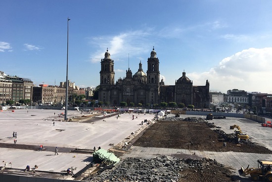 Las labores de rehabilitación de la Plaza de la Constitución continúan su curso, de abril a la fecha han sido colocados 12 mil 200 metros cuadrados de concreto hidráulico, material que se convertirá en la nueva base peatonal de este histórico espacio público.