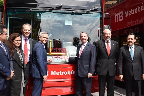 Acompañado por el ministro de Comercio Internacional de Reino Unido, Liam Fox, y el embajador de esa nación, Duncan Taylor, Mancera Espinosa indicó que “hoy estamos dando cuenta de este bus de altísima tecnología, con beneficios de reducción de emisiones contaminantes».
