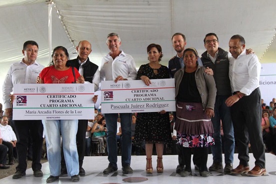 La secretaria de Desarrollo Agrario, Territorial y Urbano, Rosario Robles Berlanga, y el gobernador de Puebla, José Antonio Gali Fayad, entregaron certificados de Cuarto Adicional y escrituras, a través de los programas Papelito Habla y Un Cuarto Más .