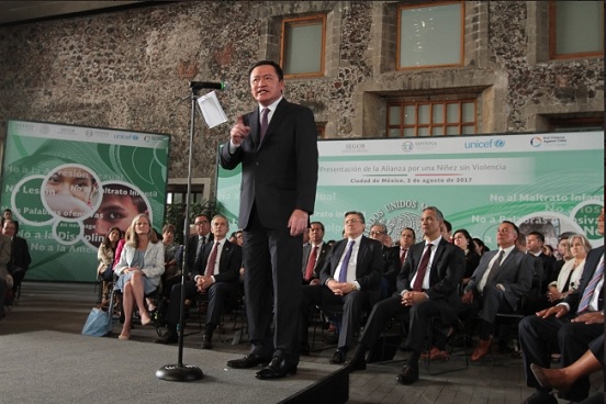 Al presentar la Alianza por una Niñez sin Violencia, el titular de la Secretaría de Gobernación, Miguel Ángel Osorio Chong, dijo que se trata de sumar esfuerzos para atender, prevenir y sancionar este delito.