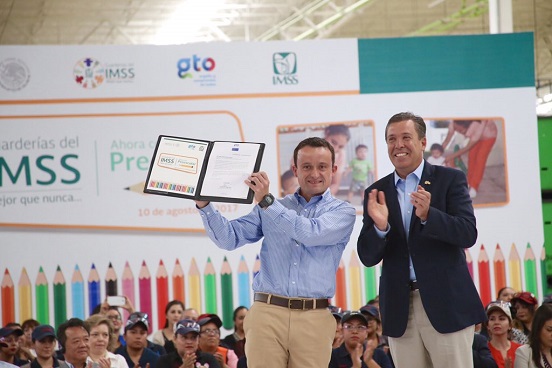 La certificación de la guardería, resaltó el gobernador, forma parte de un convenio en materia de Educación Preescolar en guarderías, entre la Secretaría de Educación de Guanajuato y la delegación del IMSS, para que en estos espacios se ofrezca el primero de preescolar, con reconocimiento oficial.