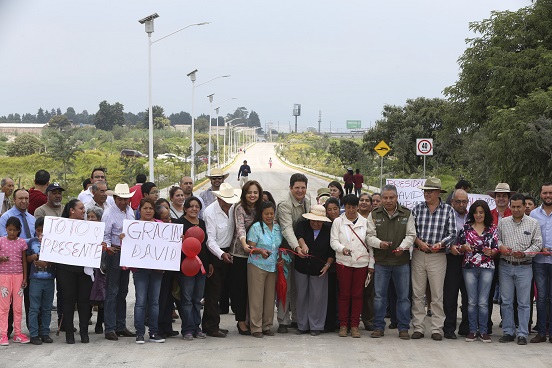 Destacó que la obra fue posible por la siempre atinada respuesta del gobierno federal con el apoyo del diputado César Camacho Quiroz, a quienes agradeció su contribución para la materialización de la vía con una extensión de 1.5 kilómetros, que incluye infraestructura de drenaje pluvial, tres mil metros lineales de guarniciones, tres mil metros cuadrados de banqueta, 44 luminarias tipo led solar, 14 mil metros cuadrados de carpeta asfáltica y 400 árboles especiales para el área urbana.