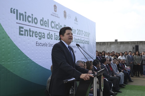 Acompañado de la senadora de la República, Ana Lilia Herrera Anzaldo; del Secretario de Medio Ambiente, Raúl Vargas Herrera y de Víctor Romero Salgado, representante de la diputada federal, Carolina Monroy del Mazo, el presidente municipal, destacó que la nueva secundaria remplaza al anterior edificio con más de 50 años de brindar servicio.