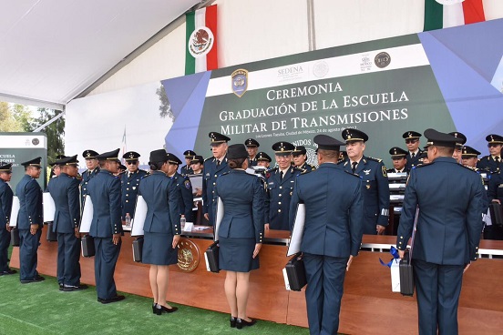 En la Escuela Militar de Transmisiones, dónde se graduaron 54 oficiales, el director José Luis Trujano Acevedo agradeció la presencia del general Cienfuegos Zepeda para atestiguar que los egresados alcanzaron la meta que se propusieron, a fin de satisfacer las necesidades del Ejército y la Fuerza Aérea Mexicana (FAM) en materia de comunicaciones.
