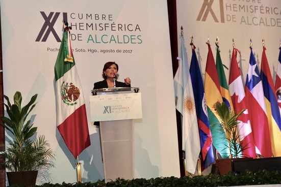 Al clausurar la XI Cumbre Hemisférica de Alcaldes, en representación presidencial, la funcionaria felicitó a los alcaldes y servidores públicos locales que acudieron al evento y señaló que su labor contribuye al desarrollo de una nación.