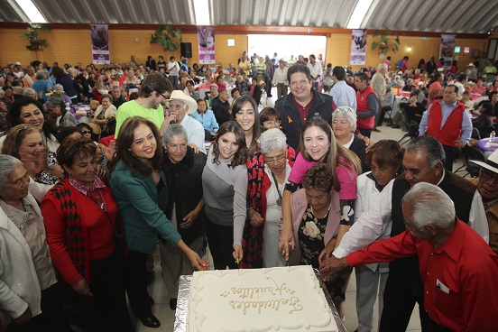 En el marco de la celebración, amenizada con música, baile, regalos y varias sorpresas, la titular del organismo asistencial, Gabriela Bringas Abarca, anunció la próxima edificación en la colonia Izcalli Cuauhtémoc I, espacio que se suma a los cuatro existentes, donde se alienta la convivencia y brinda atención para los adultos mayores en la demarcación.