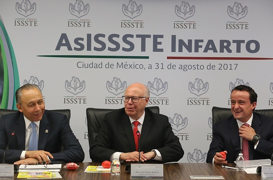 Flanqueado por el Secretario de Salud y el titular del IMSS, José Narro Robles y Mikel Arriola Peñalosa, respectivamente, el Director General del ISSSTE, José Reyes Baeza Terrazas, puso en marcha el programa AsISSSTE Infarto en nueve hospitales regionales y generales de la Ciudad de México y el área metropolitana, cuyo objetivo es proporcionar al paciente infartado atención rápida y terapia trombolítica en los primeros 30 minutos de su ingreso hospitalario y a quien lo amerite, tratamiento de hemodinamia en 60 o 90 minutos; acciones enfocadas a salvar vidas y limitar daño cardiaco.