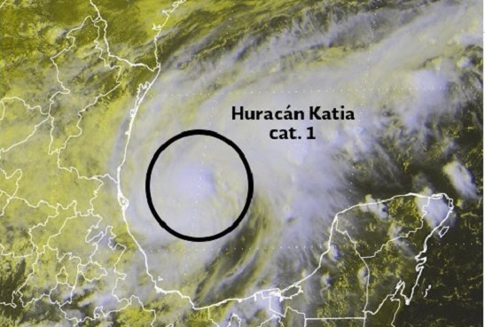 Katia evolucionó de tormenta tropical a huracán categoría 1 en la escala Saffir-Simpson. A las 16:00 horas, tiempo del centro de México, se localizó en el occidente del Golfo de México, aproximadamente a 295 kilómetros (km) al este de Tampico, Tamaulipas, y a 300 km al nor-noreste de Veracruz, Veracruz. Tiene vientos máximos sostenidos de 120 kilómetros por hora (km/h), rachas de 150 km/h y desplazamiento al sureste a 6 km/h, informó el Servicio Meteorológico Nacional (SMN) @conagua_clima, dependiente de la Comisión Nacional del Agua (Conagua) @conagua_mx.