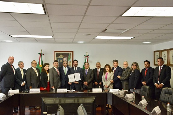 El titular de la Secretaría del Trabajo y Previsión Social (STPS), Alfonso Navarrete Prida, entregó la constancia de actualización al Comité Ejecutivo de la Federación Nacional de Sindicatos Bancarios (Fenasib), encabezada por su secretario general, José Carlos Torres García.