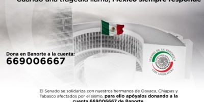 Abre Senado cuenta en Banorte para apoyar a damnificados por el sismo en Oaxaca, Chiapas y Tabasco