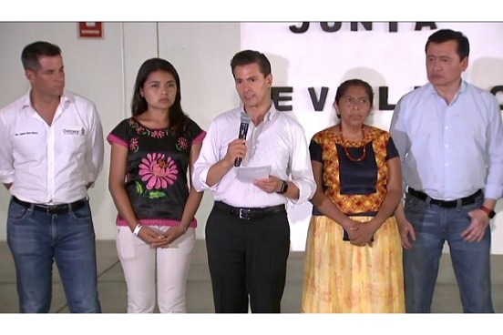 Peña aseguró a los juchitecos que hay recursos para atender a la población, hay condiciones y se ha puesto en operación la aplicación de los recursos del Fonden.