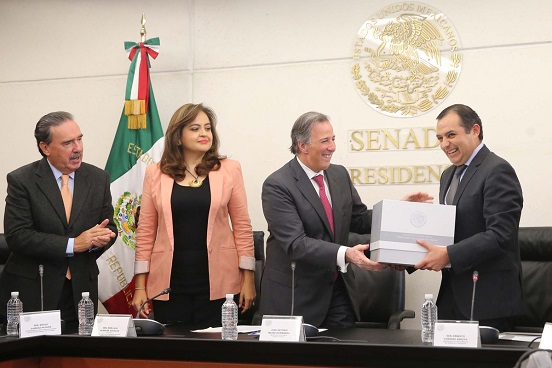 El presidente de la Mesa Directiva del Senado, Ernesto Cordero, recibió del titular de la Secretaría de Hacienda y Crédito Público (SHCP), José Antonio Meade, la propuesta de Paquete Económico 2018, con lo que inicia el proceso de análisis por parte de las y los senadores.