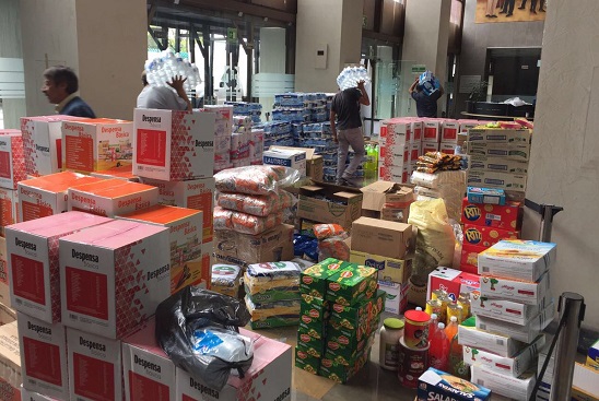 Se apoyó a la población afectada por el sismo con artículos como: agua, leche en polvo, arroz, azúcar, frijol, atún en lata, sopas y artículos higiénicos.