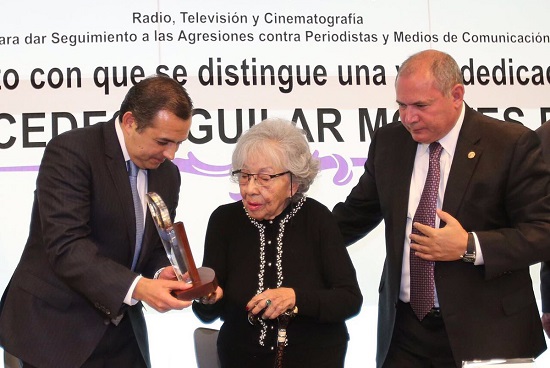 En sesión, las comisiones unidas de Radio, Televisión y Cinematografía; y de Atención a Agresiones contra Periodistas y Medios de Comunicación entregaron un reconocimiento a la periodista nacida en Toluca el 24 de septiembre de 1928 y quien es una «institución» en el periodismo y la comunicación en México.