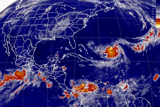 Los desprendimientos nubosos de esa zona de inestabilidad refuerzan el potencial de lluvias en el sur del país, con acumulados de lluvias intensas a puntualmente torrenciales en Guerrero y Michoacán.