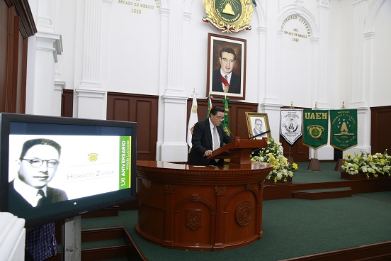 “Horacio Zúñiga Anaya fue maestro del pensamiento, orfebre de la palabra y forjador de un mundo de imágenes que no han perdido vigencia porque emanaban del fondo de su ser”, sostuvo el escritor Alfonso Sánchez Arteche, durante la Ceremonia Solemne Conmemorativa al Sexagésimo Primer Aniversario Luctuoso del poeta institutense, que presidió el rector Alfredo Barrera Baca.