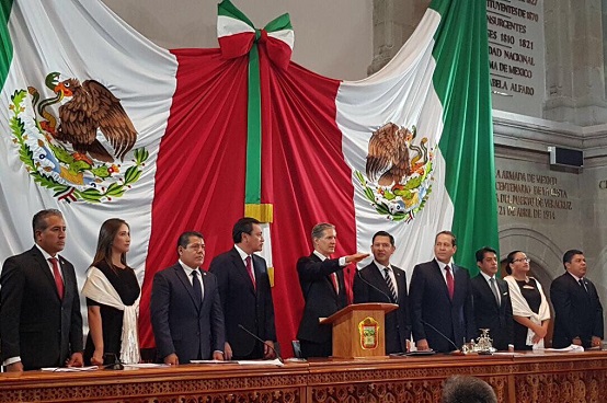 «Mi compromiso es entregarme por completo a los mexiquenses», declaró el nuevo gobernador en sesión solemne en el Congreso local.