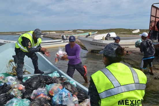 Los pescadores de la comunidad de Santa María del Mar y los elementos de la División de Gendarmería crearon un puente de ayuda con lanchas destinadas a la pesca de lisa y robalo, de esta manera se agiliza la entrega de víveres, agua y productos de limpieza.