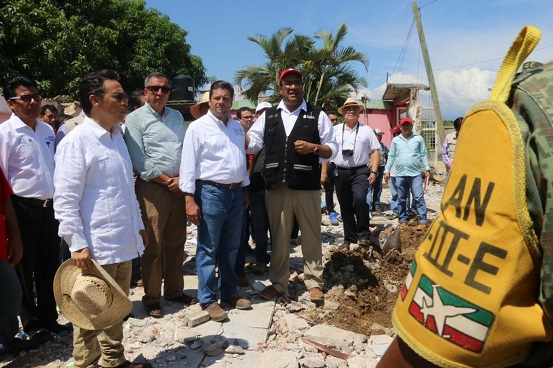 Ejemplificó que en Paredón, municipio de Tonalá, se han logrado avances importantes, ya que se cuenta con la participación de 35 empresas, más de 300 máquinas y 800 personas que trabajan en distintos puntos y destacó que el Gobierno de la República apoyará con recursos materiales y asesoría en la reconstrucción del estado.