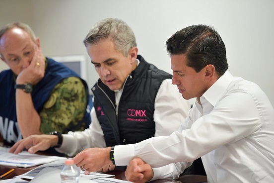 Luego de una reunión de evaluación con el jefe de gobierno capitalino, Miguel Ángel Mancera, en el Centro de Comando, Control, Cómputo, Comunicaciones y Contacto de la Ciudad de México (C5), enfatizó que su gobierno respalda las autoridades locales en la atención de la emergencia.