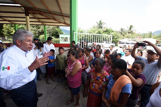 En un recorrido por las zonas afectada por los recientes sismos, el titular de la dependencia federal, Gerardo Ruiz Esparza, visitó los albergues instalados en Santo Domingo Petapa, Santa María Petapa, en donde entregó despensas a la población.