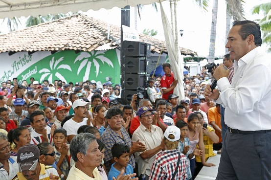 En su intervención, el gobernador Velasco Coello, aseguró que ni los pescadores ni sus esposas están solos en esta emergencia. Prueba de ello, destacó, es la entrega de recursos del PETI, tanto federales como estatales; además del pago inmediato de dos jornales, vales de gasolina y despensas.