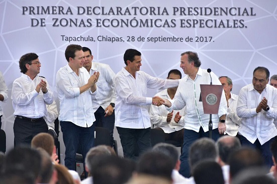Durante la Primera Declaratoria Presidencial de Zona Económica Especial (ZEE), en presencia del presidente Enrique Peña Nieto, el titular de la Secretaría de Hacienda y Crédito Público (SHCP) dijo que la mesa está puesta para que se voltea a ver al sur-sureste como una plataforma desarrollo.