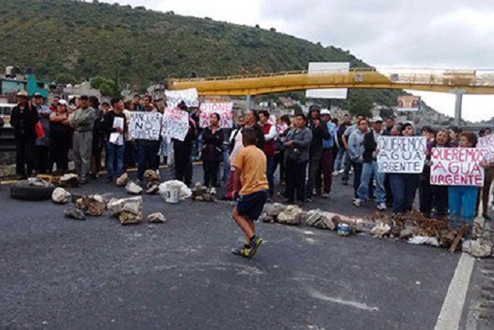 Vecinos de la colonia San Miguel Teotongo en la delegación Iztapalapa y de la colonia Emiliano Zapata del municipio de Los Reyes la Paz, bloquean la lateral de la autopista México-Puebla en protesta porque en sus casas no tienen agua desde hace 13 dias.