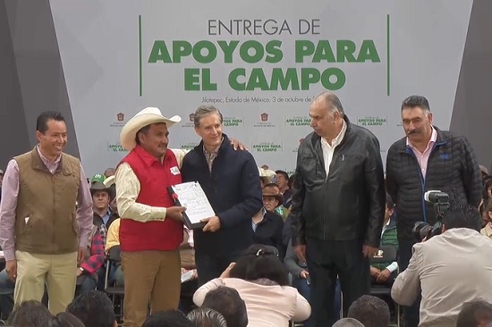 Alfredo Del Mazo afirmó que gracias a este tipo de apoyos, otorgados entre el gobierno federal y estatal, en 2016 se logró un aumento del 8 por ciento en la productividad del campo mexiquense.