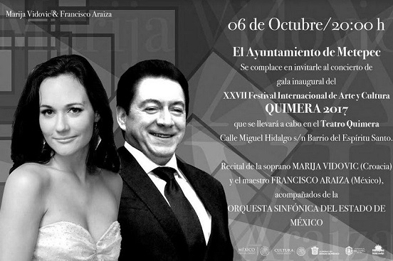 La programación para abrir el Festival Internacional de Arte y Cultura Quimera 2017, en el estreno del foro, contempla la ejecución de “La noche de los mayas” de la autoría de Silvestre Revueltas, así como un conjunto de arias de ópera integrado por: “ Aria di Violetta” de La Traviata del compositor italiano Giussepe Verdi; el “Aria Don José de Carmen”, del francés Georges Bizet, y el “Dueto final” del primer acto de La Bohème, del músico Giacomo Puccini.