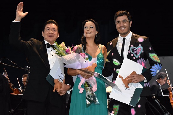 Al finalizar el recital que emocionó a los asistentes, el alcalde David López entregó una figura artesanal de barro distintiva del festival y reconocimiento a Francisco Araiza, Marija Vidovic y Enrique Bátiz Campbell, así como al muralista, Claudio Limón, autor de la obra decorativa del Teatro Quimera.