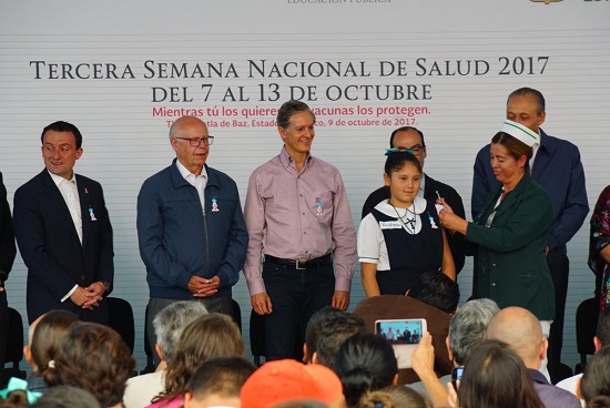 El secretario de Salud federal, José Narro Robles y el gobernador Alfredo Del Mazo Maza dieron inicio a la Tercera Semana Nacional de Salud 2017, en la que se aplicarán un millón 540 mil vacunas a los mexiquenses, entre ellas, contra el Virus del Papiloma Humano (VPH) y poliomielitis.