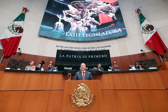 Durante su comparecencia ante el pleno del Senado de la República con motivo de la glosa del Quinto Informe de Gobierno, el funcionario fue cuestionado por la legisladora Dolores Padierna en torno a la postura del gobierno federal en caso de que Estados Unidos abandone el TLCAN.