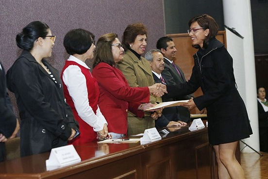 Durante la ceremonia de entrega de constancias a 240 mentores académicos, la secretaria de Docencia de la UAEM, Estela Delgado Maya, reconoció a los participantes por su apoyo fundamental durante el proceso de aprendizaje y a fin de reducir sustancialmente el índice de reprobación en unidades de aprendizaje que representan una mayor dificultad.