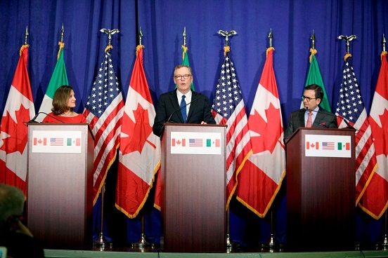 El representante comercial de la Casa Blanca, Robert Lighthizer, el secretario de Economía de México, Ildefonso Guajardo, y la canciller de Canadá, Chrystia Freeland, acordaron por ellos reunirse en la Ciudad de México del 17 al 21 de noviembre para la quinta ronda de renegociación del Tratado de Libre Comercio de América del Norte (TLCAN)
