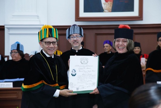 Al dirigirse a maestros y doctores, afirmó que la ética debe ser parte del quehacer universitario y está conformada por tres principios: verdad, justicia y libertad, que deben tomarse “siempre como fines en sí mismos y nunca como un medio para conseguir algún beneficio inmediato y material”.