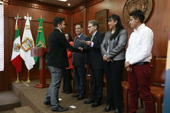 Al entregar, con el presidente de la Fundación UAEMéx, Humberto Benítez Treviño, becas a 50 estudiantes –20 de Titulación, 16 de Manutención “Lic. Adolfo López Mateos”, tres de Prácticas Profesionales y Servicio Social, 9 Académicas y 2 para los equipos Baja SAE y Canoas de Concreto de la Facultad de Ingeniería–, el rector sostuvo que con la entrega de apoyos se da continuidad a una tradición institucional que destaca el talento juvenil, que forma a estudiantes de manera integral y los proyecta para su beneficio profesional.