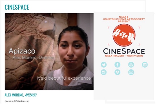 La Agencia Espacial Mexicana (AEM), anunció que el cortometraje “Apizaco”, del cineasta mexicano Alex Moreno, fue nominado dentro de los trece finalistas del concurso CineSpace de NASA y el Houston Cinema Arts Festival, que se llevará a cabo del 9 al 13 de noviembre.