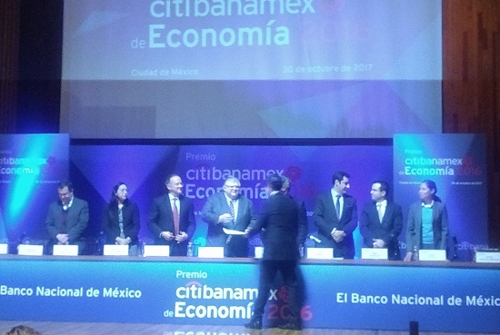 “Con este reconocimiento, el Grupo Financiero Citibanamex contribuye a entender las fronteras del conocimiento económico y además propicia que se generen opiniones sólidas sobre las políticas más apropiadas para enfrentar los problemas que afectan al desarrollo económico de nuestro país”, añadió acompañado por el director general de la institución financiera, Ernesto Torres Cantú.